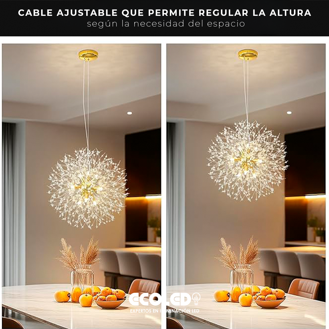 Transforma cualquier espacio, perfecto para comedor, sala o habitación, este diseño tipo diente de león aporta ese toque glamuroso que roba miradas.